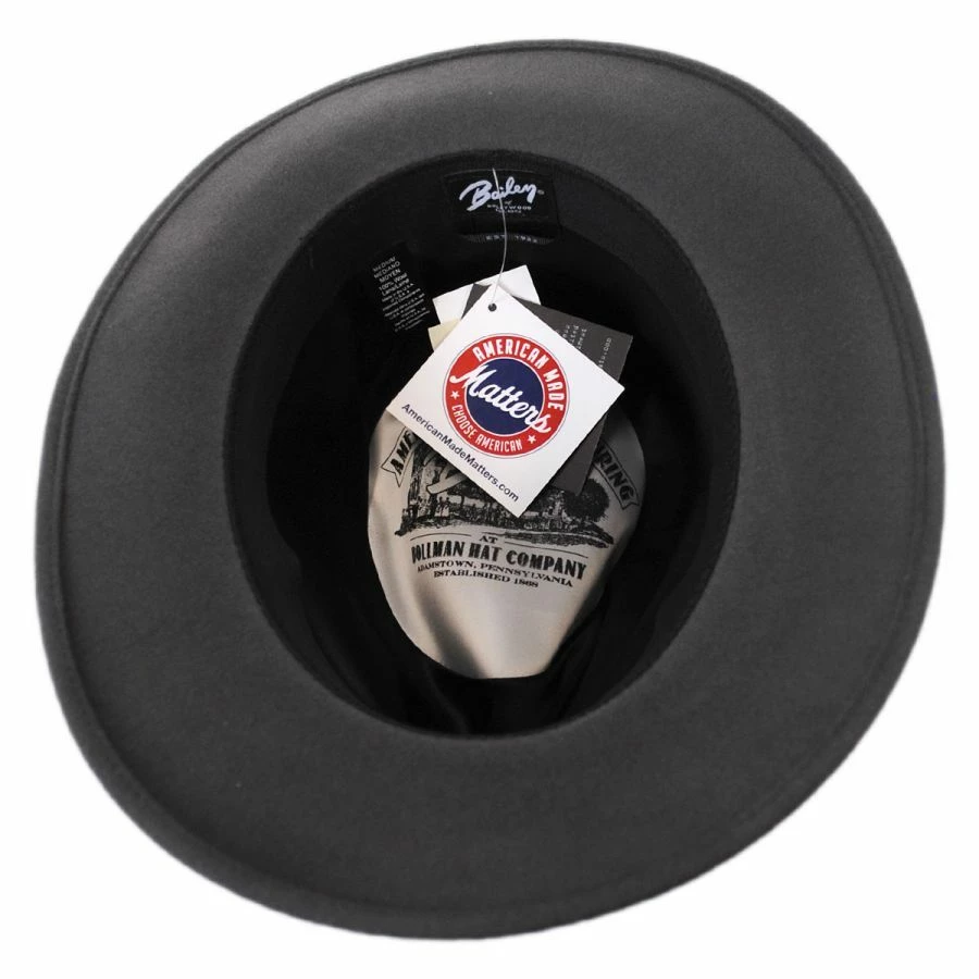 Featuring an elite finish, the 100% wool felt Ammon Wool Felt Teardrop Fedora Hat by Bailey is astonishingly silky to the touch. A classic teardrop crown (aka C-Crown) and all around downturned brim characterize this elegant fedora hat. Finished with a Japanese grosgrain hat band, small Bailey side pin, fine woven sweatband and fully lined in satin – the Ammon Teardrop Fedora Hat by Bailey is a handsome to your fall/winter wardrobe.