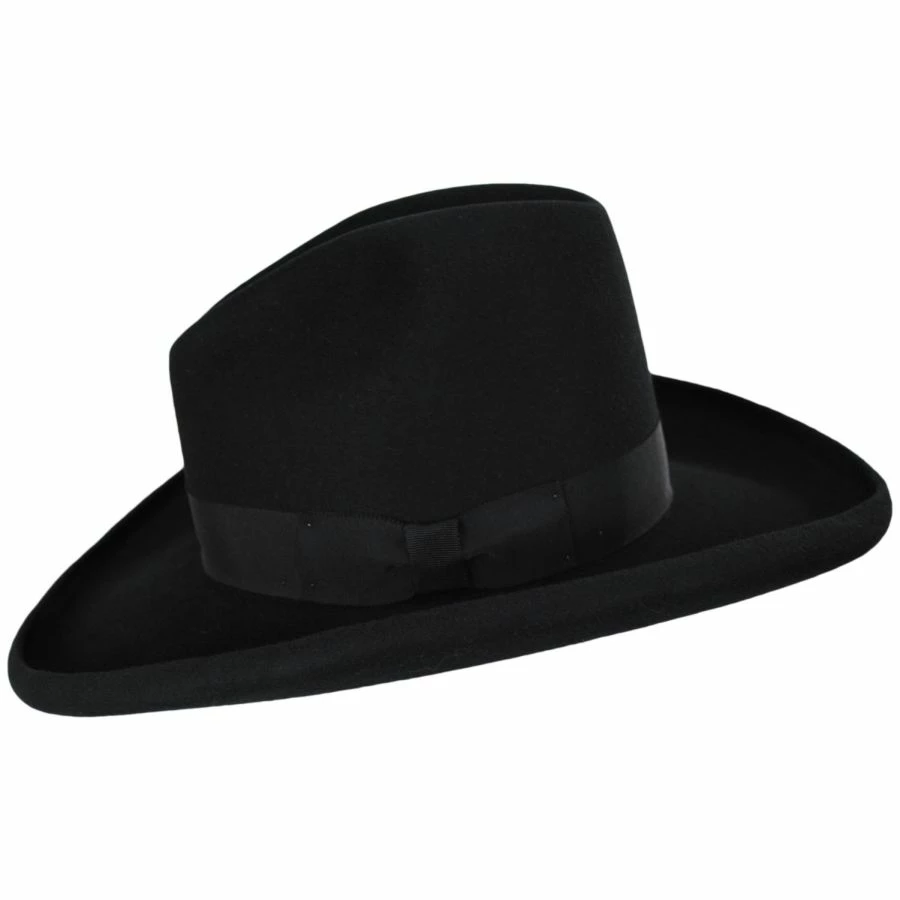 Made in the USA and part of their Frontier Collection, Bailey’s Clayton Wool and Fur Felt Blend Gus Western Hat is all quality and tradition. With a traditional gus crown, this stiff western also features an expertly crafted pencil rolled brim. The finest wool and angora fur felt produce the 4X blend, Bailey shows they aren’t ones to skimp on the details. The final touch is a classic black grosgrain ribbon hat band and bow.