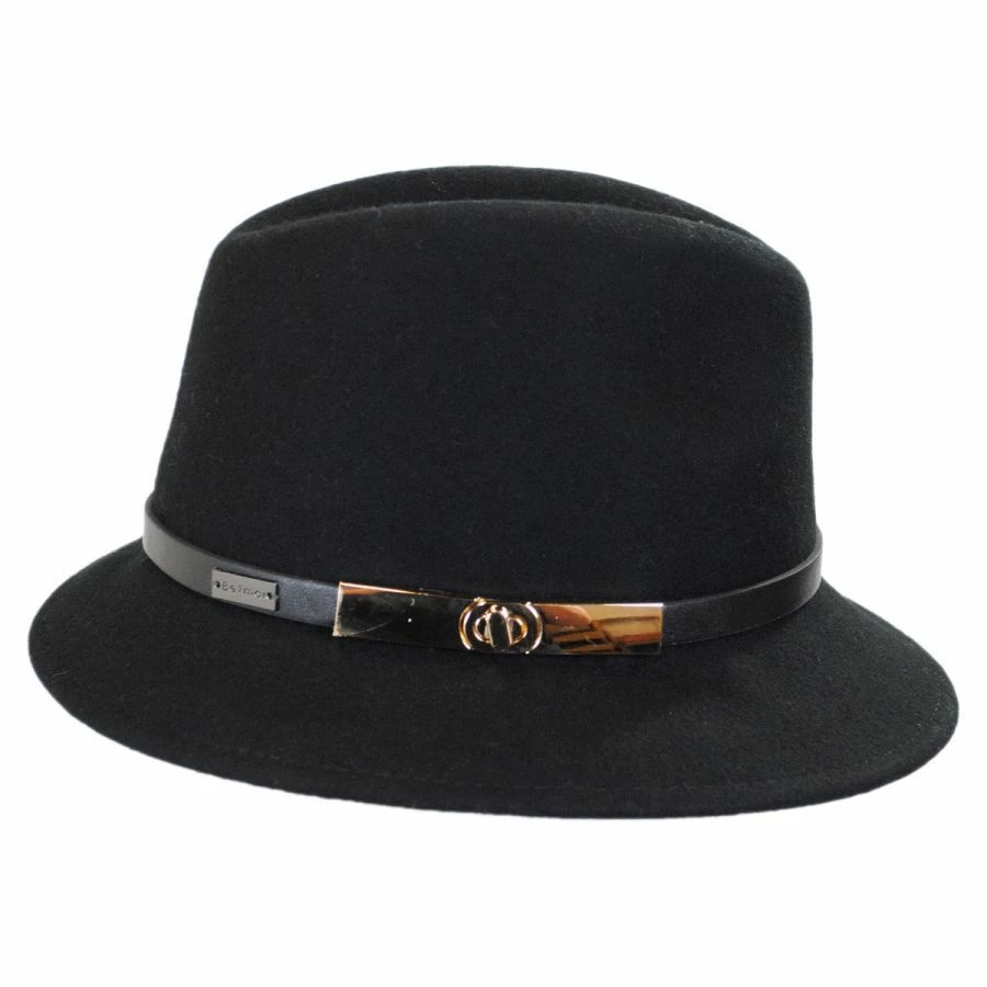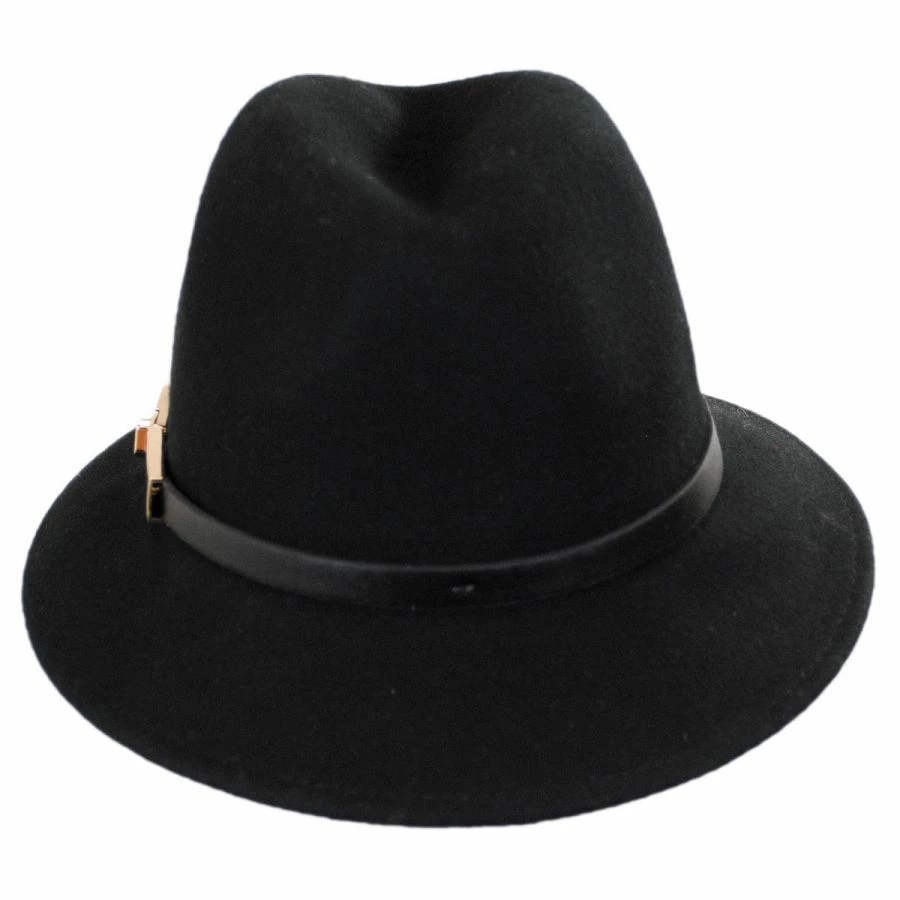 Introducing the Darcy Wool Felt Fedora Hat by Betmar. This is the perfect feminine fedora that has a leather hat band with a decorative metal decor to make this piece really pop. If you love the center dent fedora style but want something that is more your style this may be the perfect hat for you.