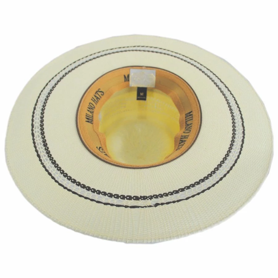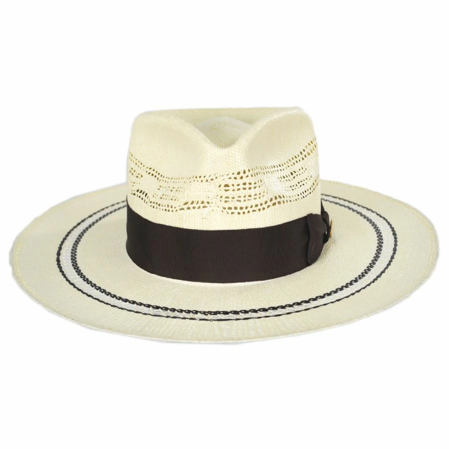From Biltmore Hats’ Vintage Couture line, we have the Chiron Wide Brim Bangora Straw Fedora Hat! A beautifully designed fedora made of 100% bangora straw with a stiff body and a vented crown. The Chiron is adorned with an extra wide grosgrain ribbon hat band, a side bow and a Biltmore wax seal side pin. A truly stunning piece made in the USA by the expert craftmanship at Biltmore Hats.