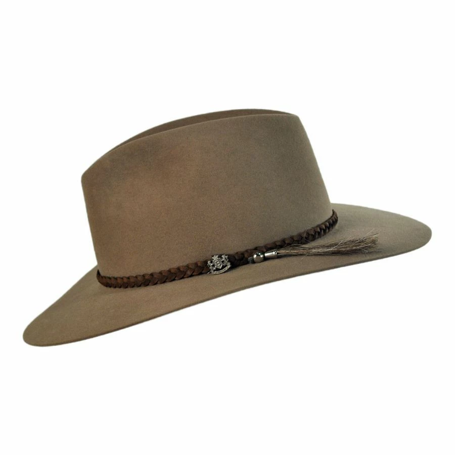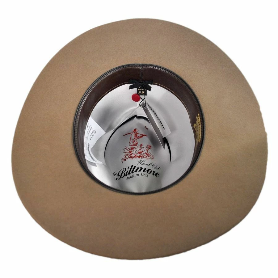 Introducing the Crossroads 6X Fur Felt Western hat by Biltmore, Hunt Club line. This piece has a gorgeous leather woven hat band that makes it stand out from the rest. They added a little individuality with including a side tassel that is connected to the hat band.