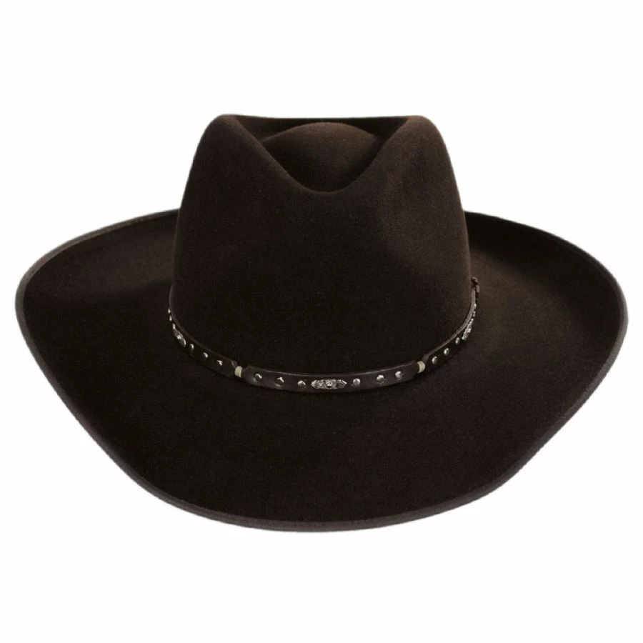New from Biltmore’s Hunt Club line of headwear, the Jackson 6X Fur Felt Crossover Hat is all about the handmade details! A hand-curled brim gives this hat its distinctive shape while the fur felt has been polished and sanded for a smooth feel that is unbeatable. Made in the USA, the Jackson is water resistant and features a genuine leather hat band with metal accents and studs, a grosgrain ribbon binding on the brim, a suede sweatband and a satin lining.