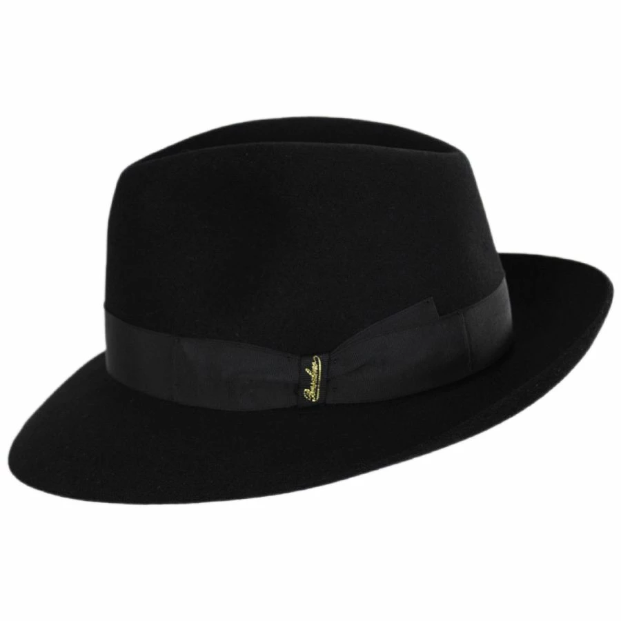 Find a quality hat you can rely on with the Alessandria Shaved Fur Felt Fedora Hat from Borsalino. This quality fedora features a shaved fur felt body, as well as a comfortable leather sweatband with a smooth satin interior lining. The grosgrain ribbon hat band and side bow are a touch of style and class wrapping around the crown!