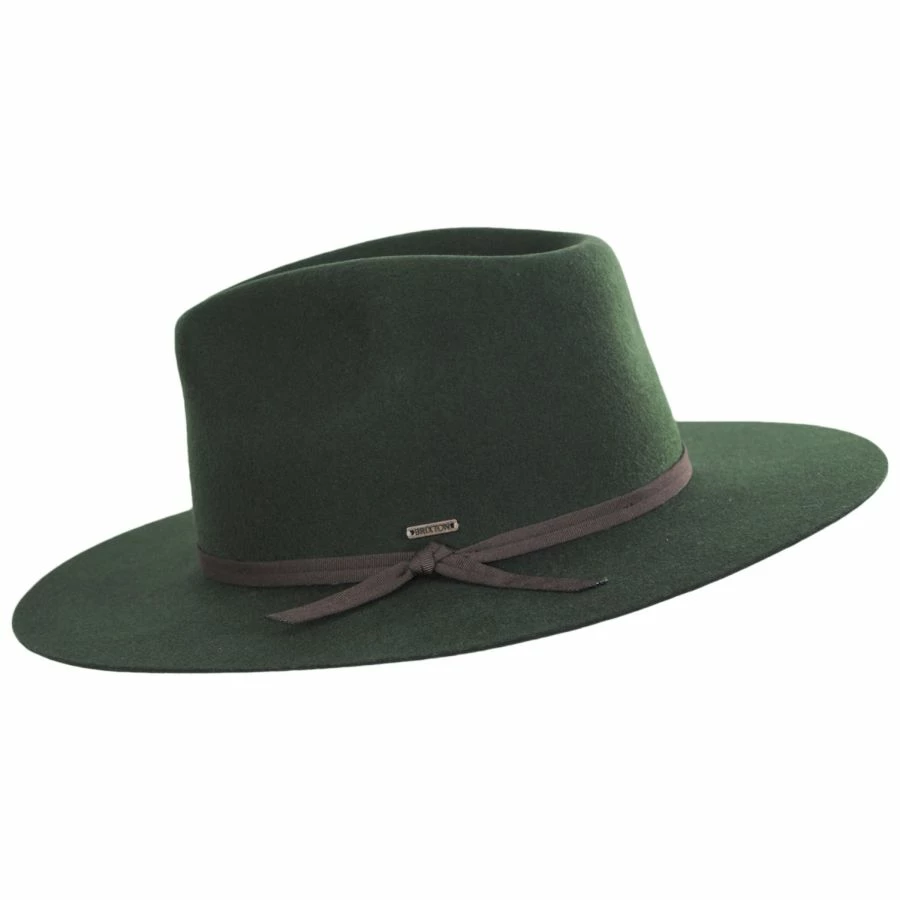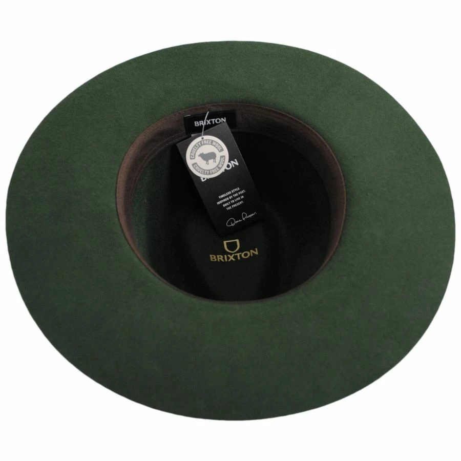 The Cohen Wool Felt Cowboy Hat is a wonderful laidback western brought to you by Brixton Hats. Features a stiff body with a teardrop crown and a contemporary flat brim. The 2-ply grosgrain ribbon hat band and raw edge brim are classic characteristics of a traditional western. Want to add a subtle western flair to your look, choose the Cohen!