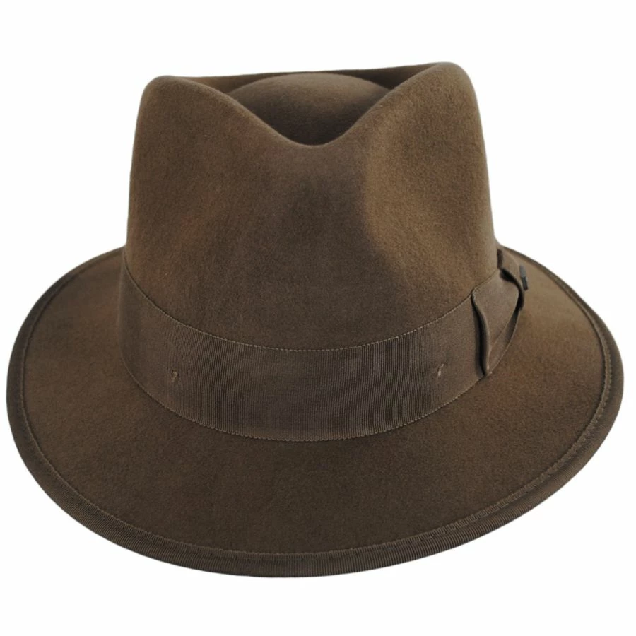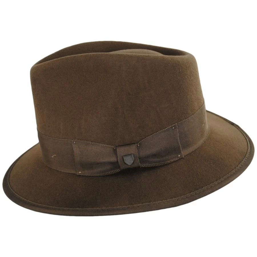 Take Brixton’s classic wide brim fedora and give it a trim, that’s the Paco Wool Felt Fedora Hat. Featuring a 2 1/4″ brim and a flexible body, the Paco is a fresh and innovative hat! Trimmed with a grosgrain ribbon hat band and binding on the brim.