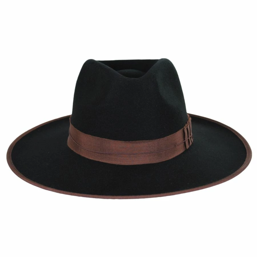 The Reno Wool Felt Fedora Hat by Brixton Hats will have you turning heads with its innovative and striking design. The Reno is made of 100% wool felt with a semi stiff finish. A grosgrain ribbon hat band is finished with pleated detailing on the left and a layered string accent. The brim is also trimmed in grosgrain ribbon. An adjustable velcro strap under the sweatband helps you can find the perfect fit!