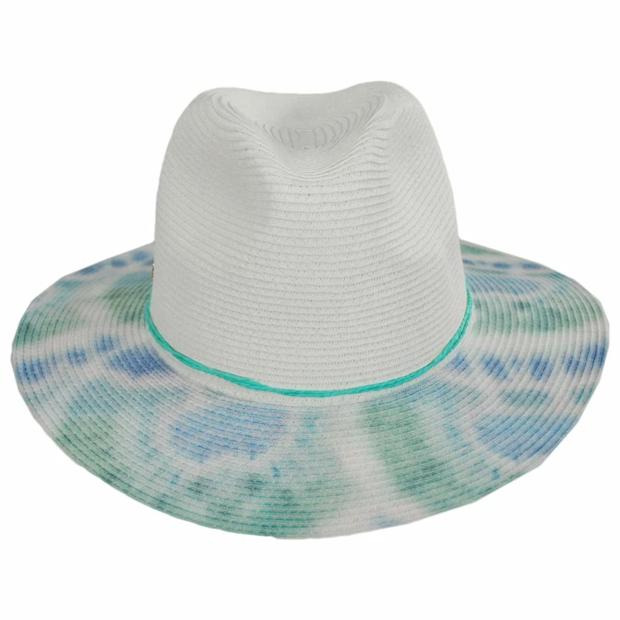 The Medodi Toyo Straw Fedora Hat from Cappelli Straworld is made of toyo straw that has been braided and shaped into a safari-style fedora. The 3 1/8″ brim has been given a tie-dye pattern which adds a burst of color. And the twisted toyo straw hat band adds even more color!