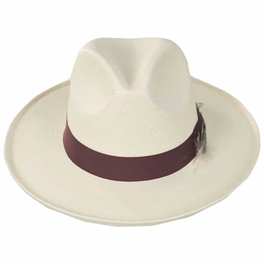 Dobbs’ Arlo Shantung Straw Fedora Hat is a stylish fedora, designed with an attractive pencil curl brim. The lightweight firm shantung straw body is adorned with a wide grosgrain ribbon hat band, feather accent piece, and Dobbs’ lion side pin. Thanks to these elements, the overall effect of the Arlo is definitely dressy.