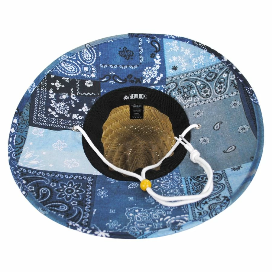 The new Wyatt Straw Lifeguard Hat features their classic straw lifeguard hat body with an bandana patchwork-themed binding on brim, lining and Hemlock sewn patch. An adjustable chin cord adds protection during windy conditions; a stretchy and absorbent sweatband completes the style. Perfect for wearing poolside, at the beach, on a hike or anywhere else the sun shines.