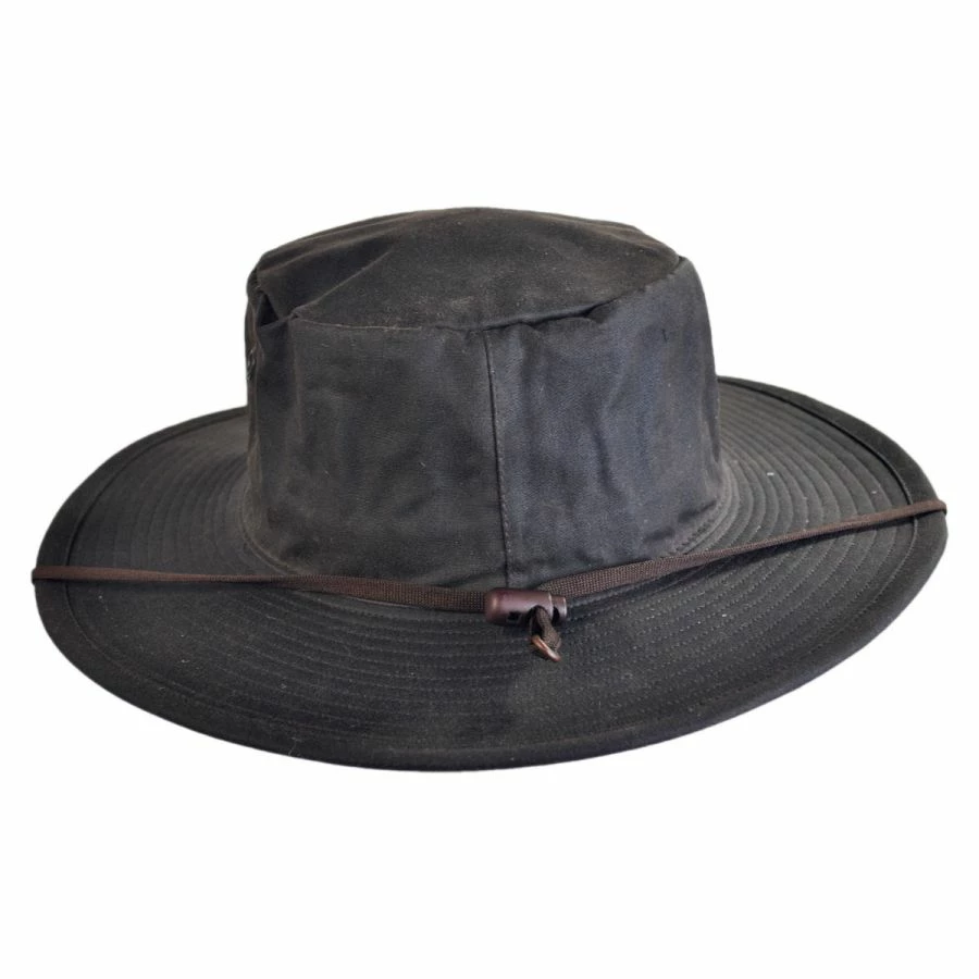 The Squatter Waxed Cotton Booney Hat features genuine Australian oilskin (waxed cotton) in a classic booney design with a crushable crown. Water repellent, the wide brim will keep you protected and the chin cord with toggle will ensure a secure fit. Vertical side ventilation grommets will help keep your head cool.