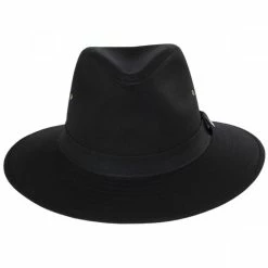 Jaxon Hats presents the stylish and water resistant Black Cotton Oilcloth Safari Fedora Hat, a new addition to our growing collection of timeless hat styles. Crafted of famously hardy cotton oilcloth, this style boasts a classic safari fedora design including a pinch crown and a downturned brim for added protection from the elements. Two ventilation grommets are embedded on either side of the crown to help provide air flow while a sleek, self-fabric hat band adorns the crown finished with a removable Jaxon “J” side pin. Keep dry without sacrificing personal style, the Cotton Oilcloth Safari Fedora by Jaxon Hats is the one you’ve been searching for!