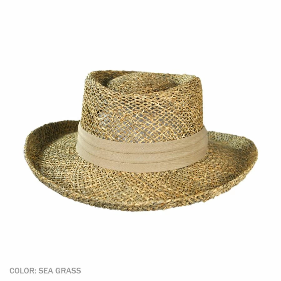 Constructed of stiff seagrass, the gambler features a handsome 3-pleat cotton hat band and an elasticized terrycloth sweatband for an easy comfortable fit. The underbrim and crown are pressed with cotton fabric which provides extra sun protection while still allowing maximum ventilation so you keep your cool at all times.