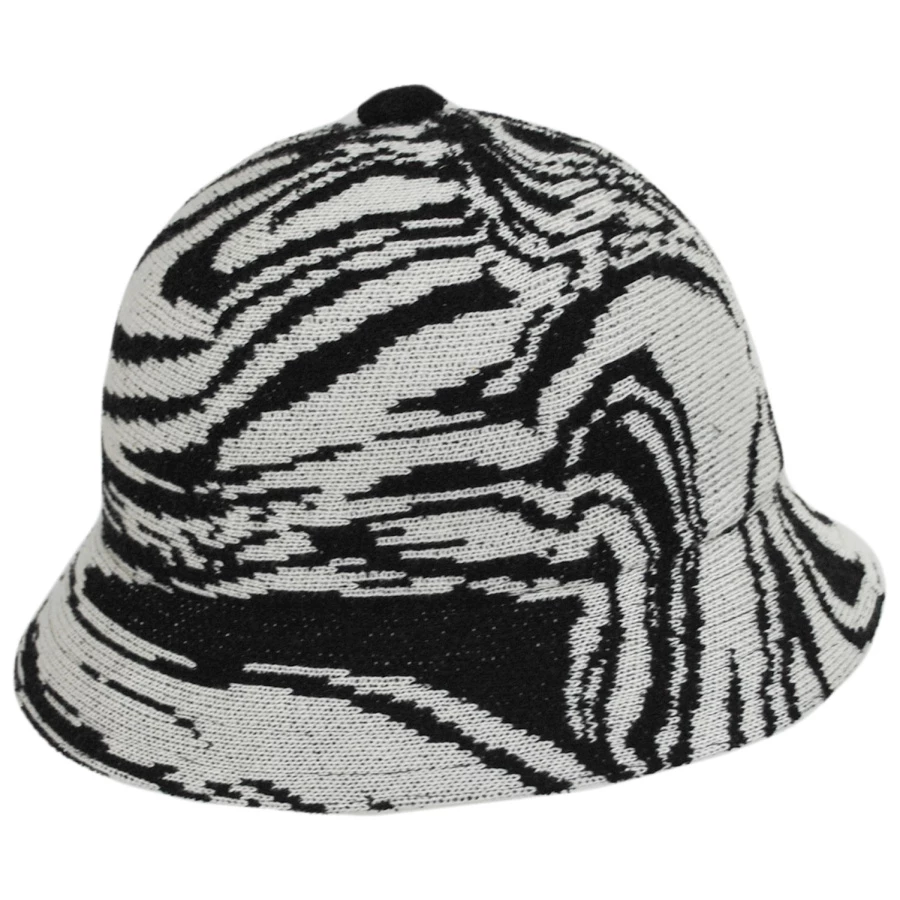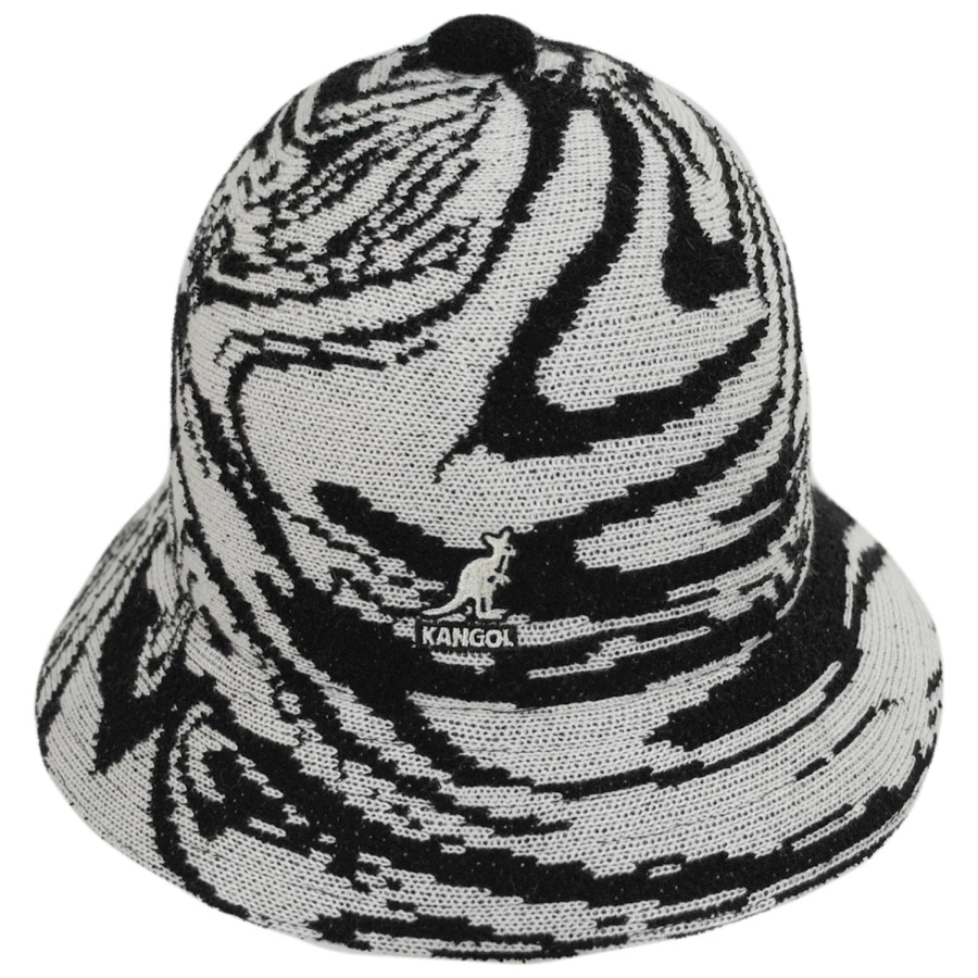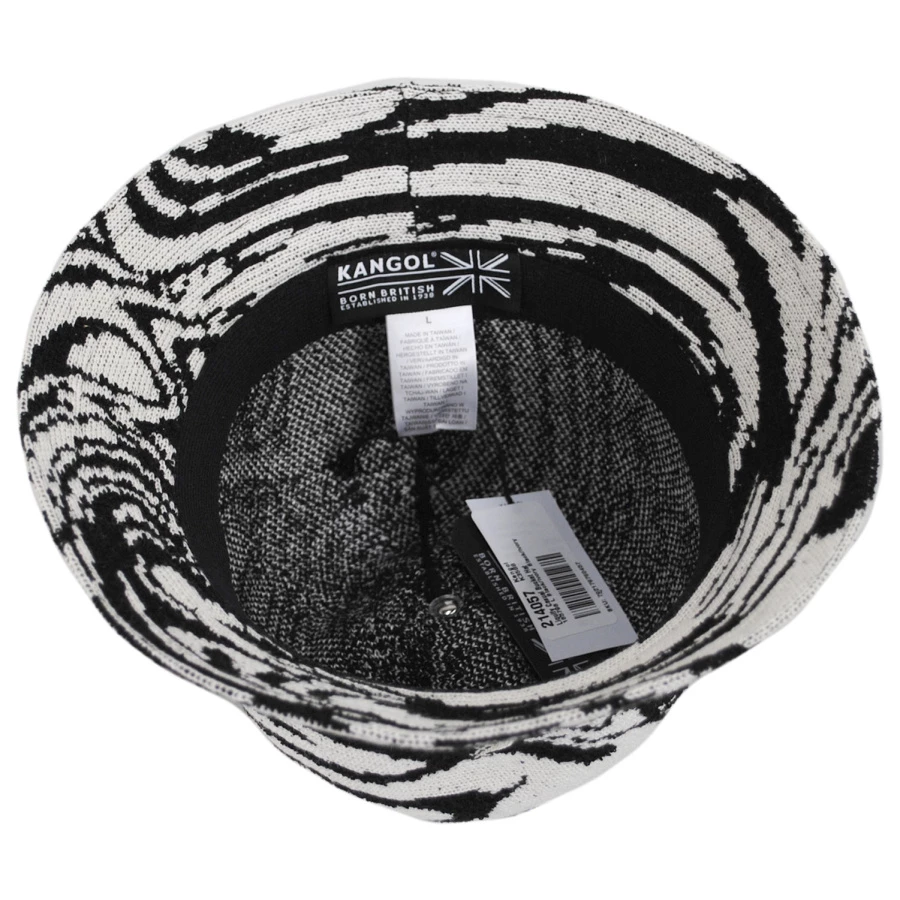 Pop on the Liquify Casual Bucket Hat from Kangol and show off your fluid sense of style! The main attraction of this fun-loving hat is the knit abstract pattern which has a wavy liquid effect. The Liquify also features a classic bucket design with a handy downturned brim and a top button. This hat is unlined with a comfortable knit sweatband.