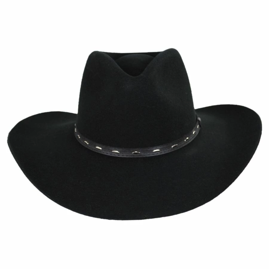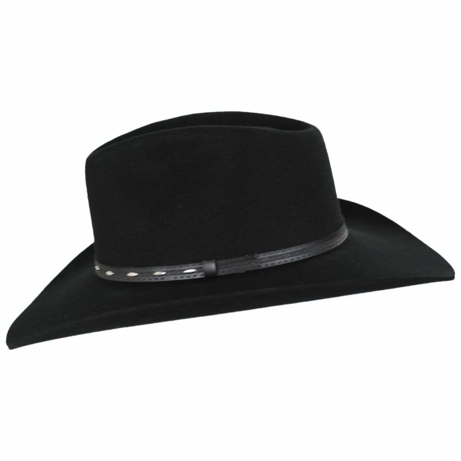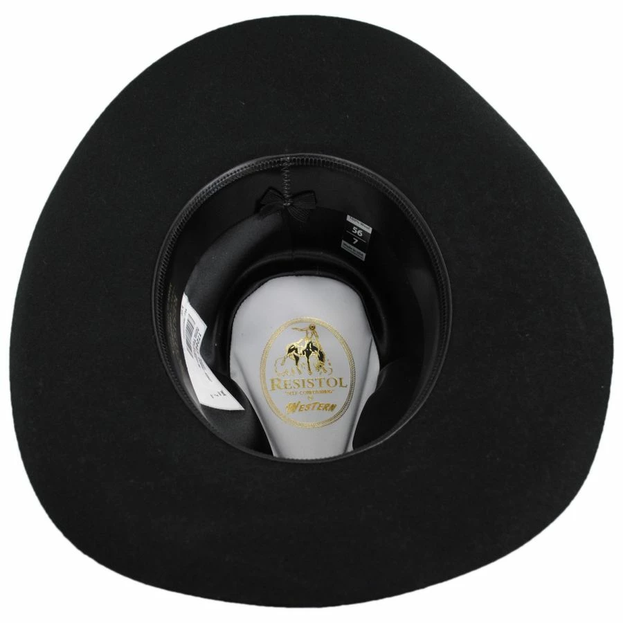 The Briscoe Wool Felt Western Hat by Resistol is a western hat with a stiff body that creates an absolutely beautiful silhouette. A leather hat band with silver accents adorns the crown while the interior boasts a leather sweatband and satin interior. This Resistol hat has been made in Texas, U.S.A.