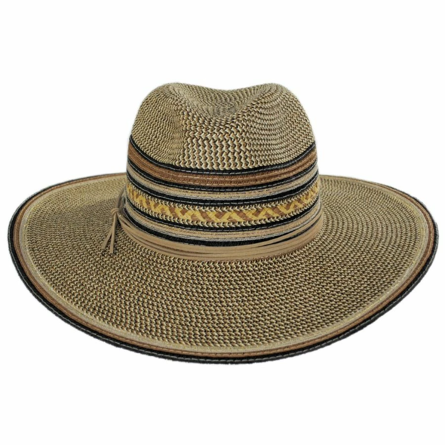 Scala’s Alento Braided Toyo Straw Fedora Hat is all about mix and matching patterns. The stunning selection of patterns adorning the center dent crown gives the Alento effortless boho vibes. A multilayered hat band adds further detailing, as well as, the three layered binding on brim. Also features an adjustable drawstring sweatband and is unlined.