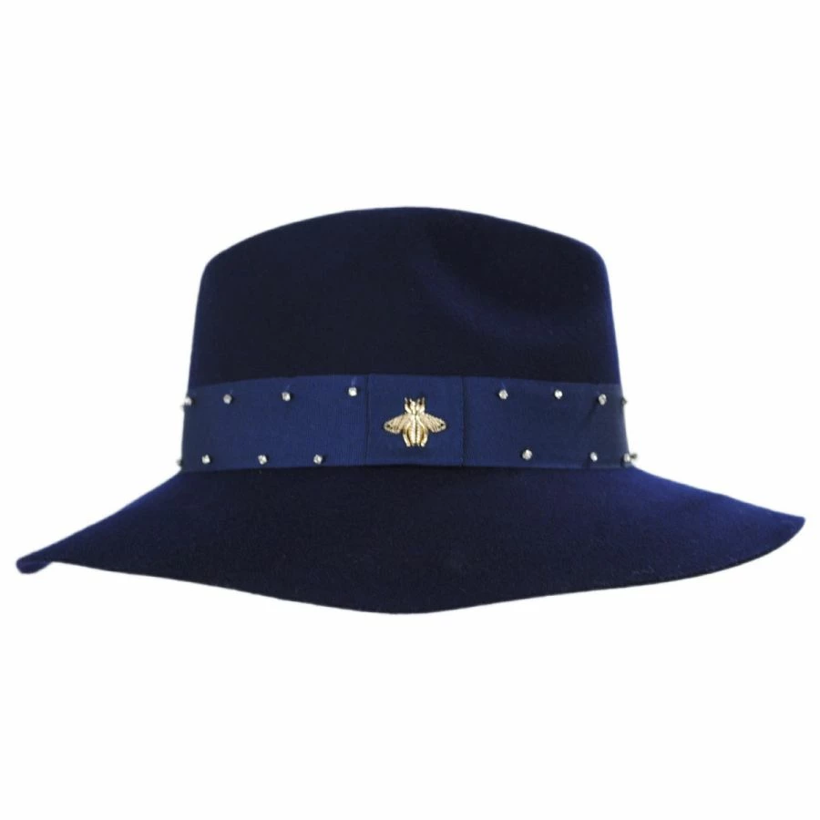 The Winslow Wool Felt Safari Fedora Hat by Scala is crafted of 100% wool felt with a pinch front crown and a floppy down brim. With a wide grosgrain ribbon hat band, the Winslow adds a bit of bling with a double row of rhinestone accents and a gold metal bee hat pin. The satin sweatband with an elastic band allows the wearer to adjust the hat to their perfect fit. The Winslow is for those who are seeking some sparkle to their finished look.