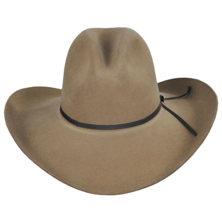 Part of Stetson’s new John Wayne Collection, the John Wayne Peacemaker Wool Felt Western Hat is inspired by Wayne’s timeless masculinity. Featuring a classic gus crown, the Peacemaker is adorned with a narrow, 2-ply grosgrain ribbon hat band and a metallic ‘Howard Hawks’ inspired belt buckle side pin*. The hat’s interior boasts a smooth leather sweatband and custom satin lining. Perfect for John Wayne and Western hat fans alike, the John Wayne Peacemaker embodies the enduring American spirit.