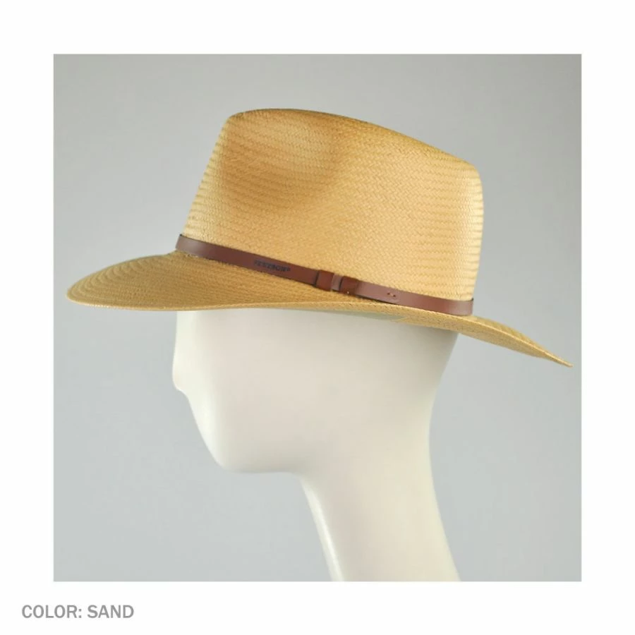 The Limestone Toyo Straw Outback Hat is a classic Stetson straw hat. It features a Teflon™ treatment to repel water and oil based spills as well as a laminated underbrim fabric that shades both your neck and face. In addition, the Limestone Outback has a reinforced crown which adds durability.