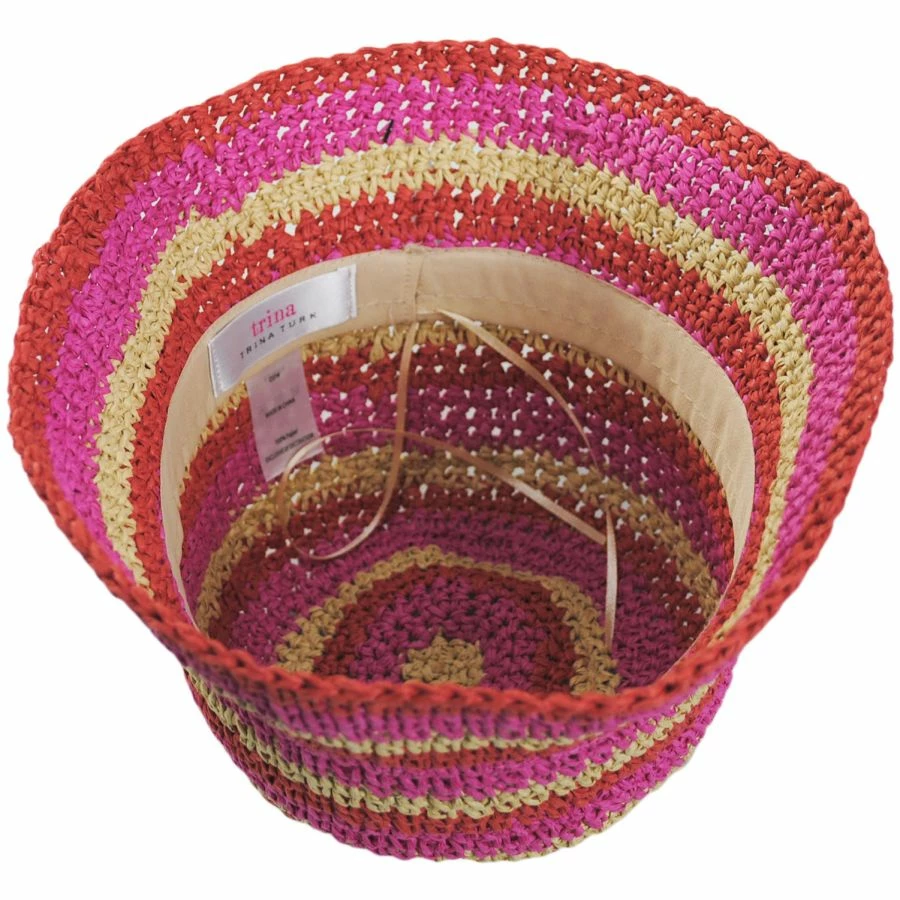 A multicolored dream, that’s the Palo Striped Crochet Toyo Bucket Hat by Trina Turk. This bucket hat is made of toyo straw in simple but delicate crochet. The result is a slightly structured bucket with a multicolored striped pattern that is sure to captivate and delight. The crochet body also allows for plenty of ventilation making is a practical hat for spring and summer.